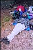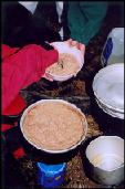 With Daesik, Peterson, Karen, Cecily, Daphne, Phoebe, and Percy. Very windy and cold. That is a bowl of oatmeal mixed with chocolate mix powder... It was our breakfast(compare). Get the movies (avi format) from Karen's website.